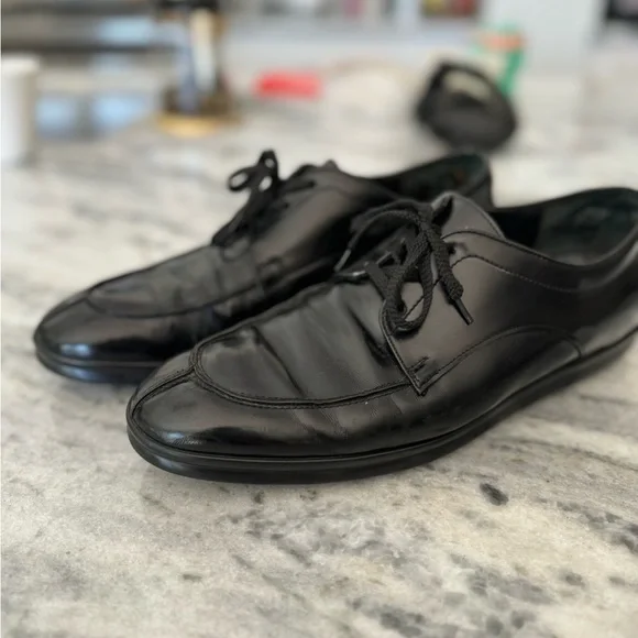 Mens black leather shoes.