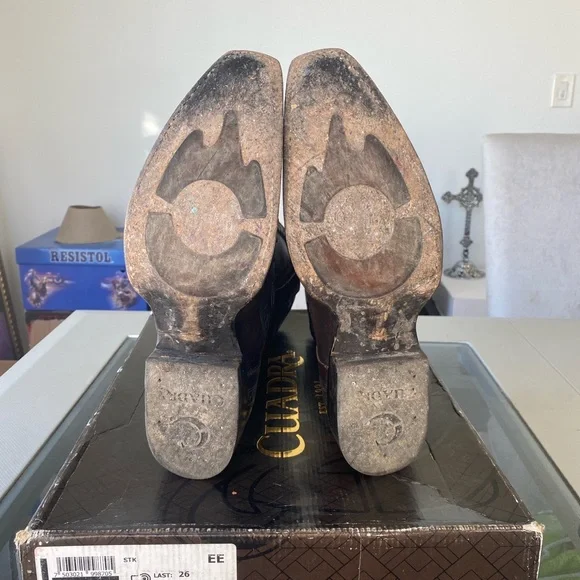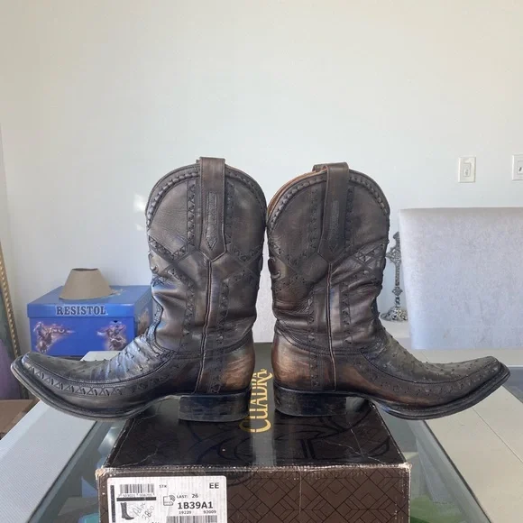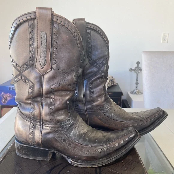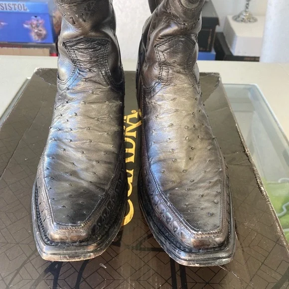 Used Cuadra Brand Men’s cowboy boots Real Ostrich Leather size 9 1/2 USA