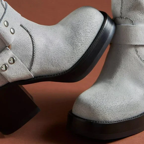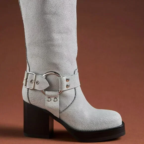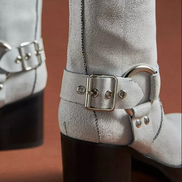 Jeffrey Campbell Cracked Cow-leather White Moto Boots - 7 - NEW