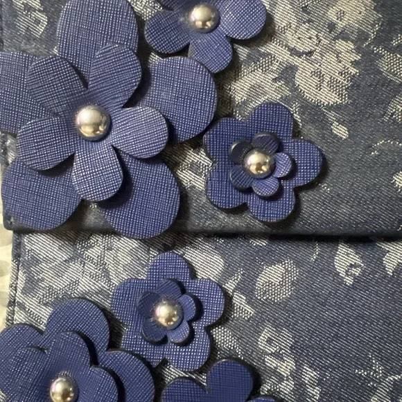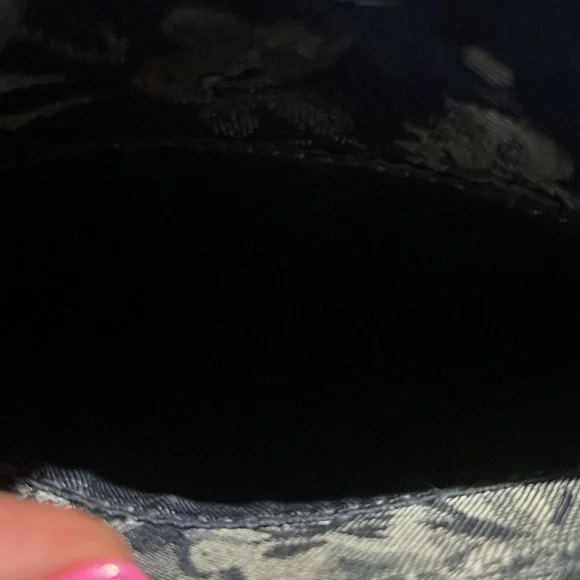 Very good used condition Christian Siriano jeans, small bagNo rips, no discoloration corners are good. Bottom is good. In the back there is a pocket and can feed iPhone 15 Pro...