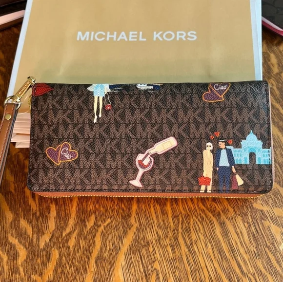 ❤️New! Michael Kors jet set girls large zip around wallet limited edition