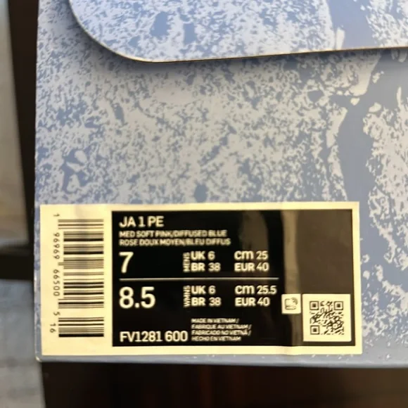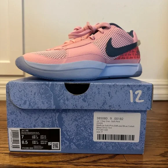 BRAND NEW IN BOX - JA 1 PE basketball shoes!Highly sought after size 7 mens/ size 8.5 womens!Colorway is beautiful:medium soft pink/diffused blue/cobalt bliss/citron...