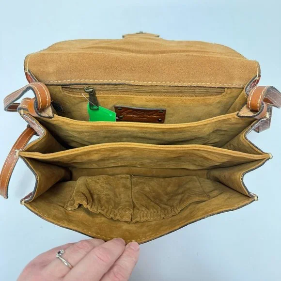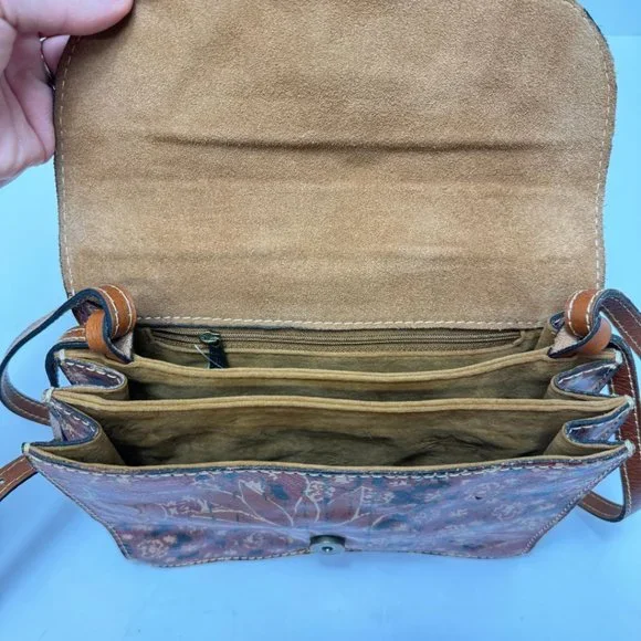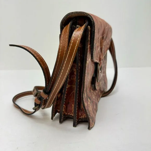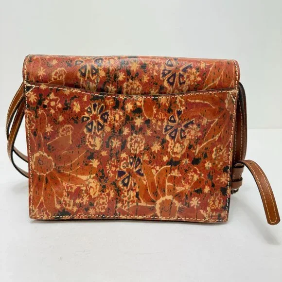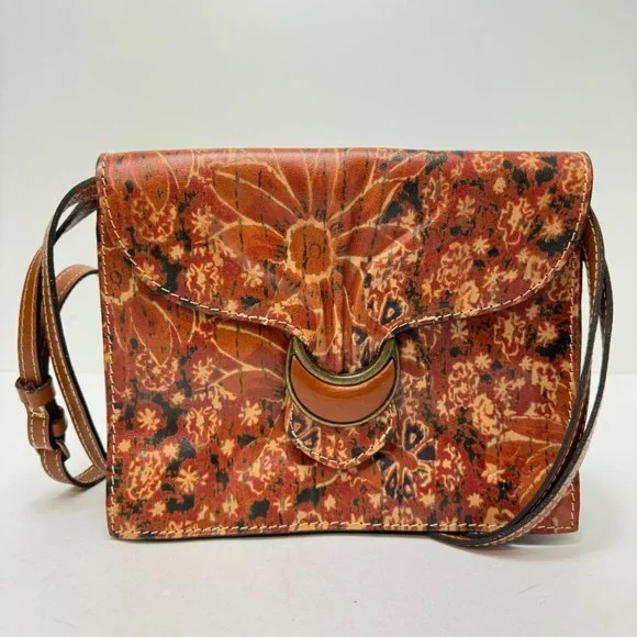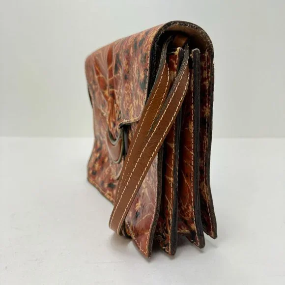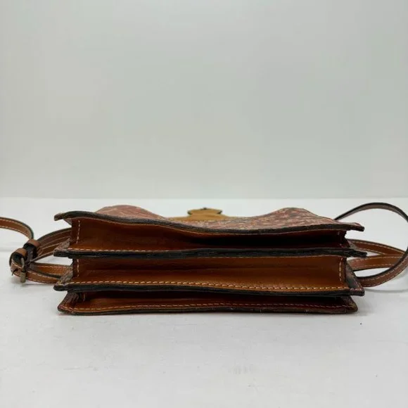 Patricia Nash Crossbody Magnetic Close Print Leather Purse Brown Tan Red
