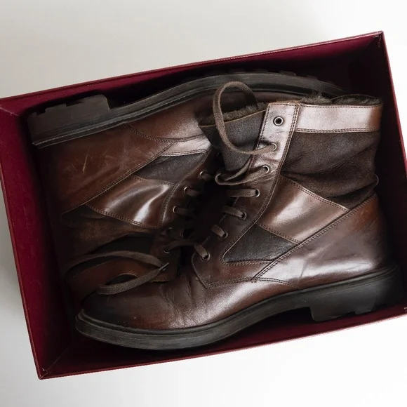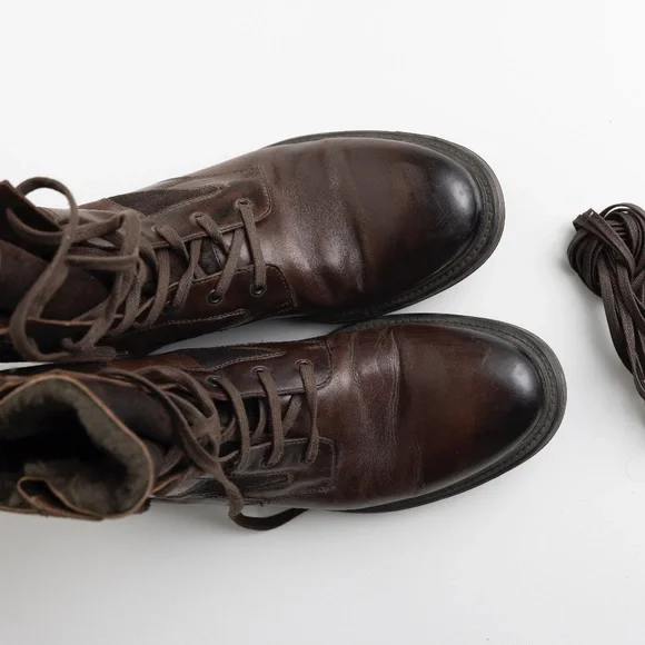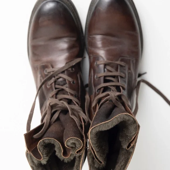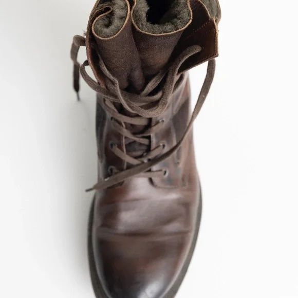 To Boot New York Tobias lace-up ankle bootsSize 10.5.Dark Brown Leather that lightens towards the front.Genuine shearling lining.Handmade in Italy. Very Beautiful Boot. Rare.