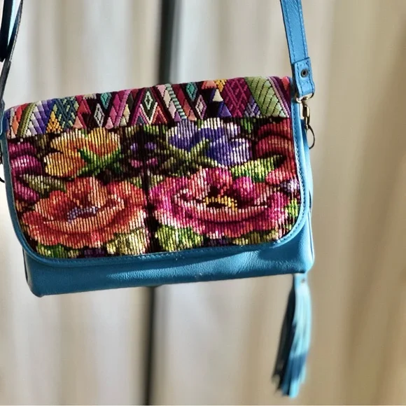 SALE! Handmade Crossbody - Needlepoint & Leather, Tassel, Adjustable Strap