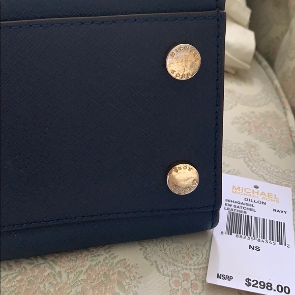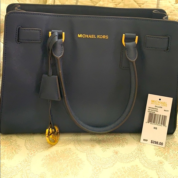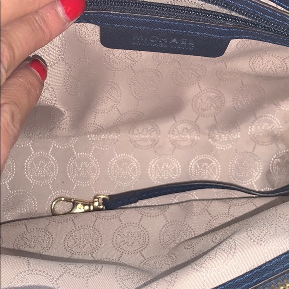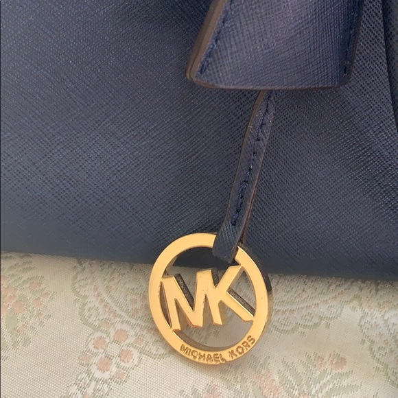 MK navy satchel.Gently used pre loved in good condition satchel.Comes with detachable crossbody strap.Sold as is.Flaws and blemishes shown in pictures.Happy shopping and thanks for looking ❤️❤️❤️