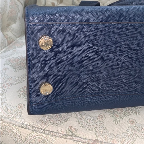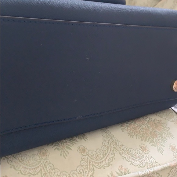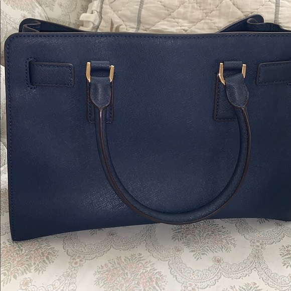 MK navy satchel.Gently used pre loved in good condition satchel.Comes with detachable crossbody strap.Sold as is.Flaws and blemishes shown in pictures.Happy shopping and thanks...
