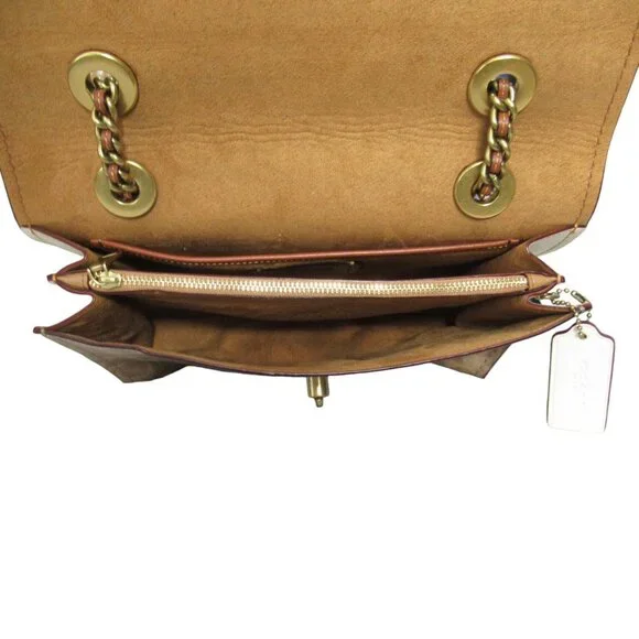 Brand: CoachColor: White & BrownDimensions: 10.25" W x 8" H x 4" D19" adjustable chain/leather strapExterior: Made of LeatherNo Closure (broken)Gold Toned Hardware1 Rear Zip PocketInterior: Brown Suede Interior1 Middle Zip Compartment1 Slip PocketSignature Leather PatchThis item was preowned therefore, the closure of the bag is broken and there are some scuffs/scratches on the exterior of the bag, other than that this bag is in GREAT FUNCTIONAL CONDITION.
