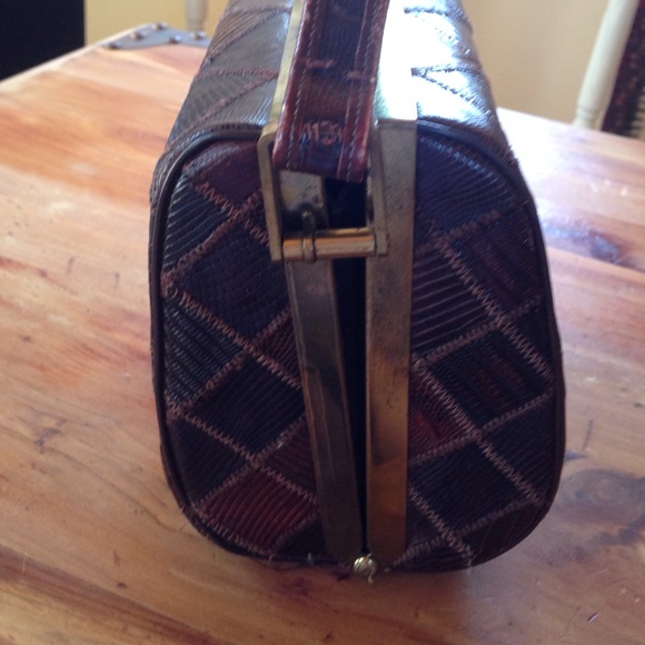 Vintage crocodile skin multi-brown little purse with bronze hardware
