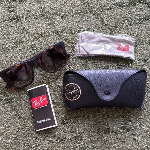 New never worn ray-ban rb4165 justinsize: 54mm-16mm-145mm (large)color (frame): matte rubber tortoisecolor (lens): brown gradient