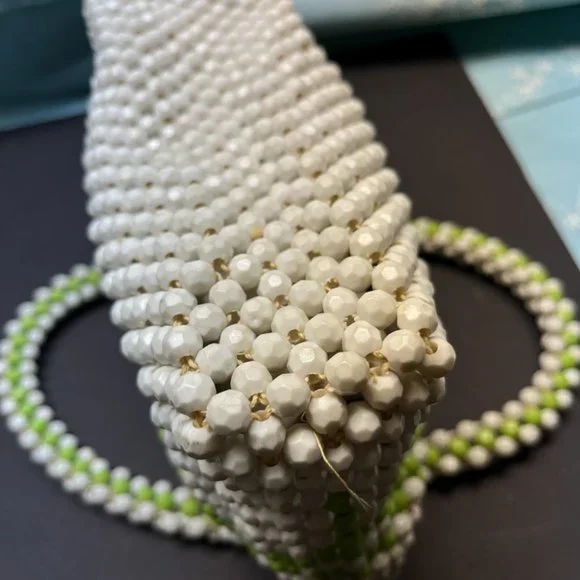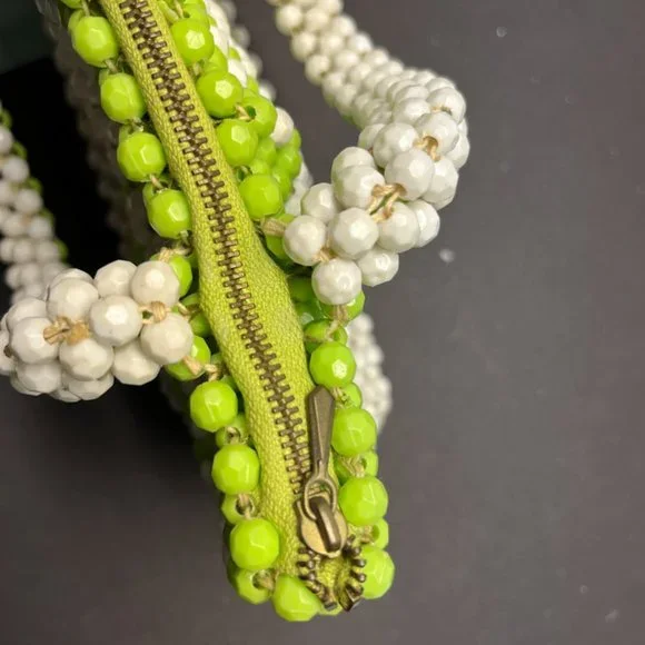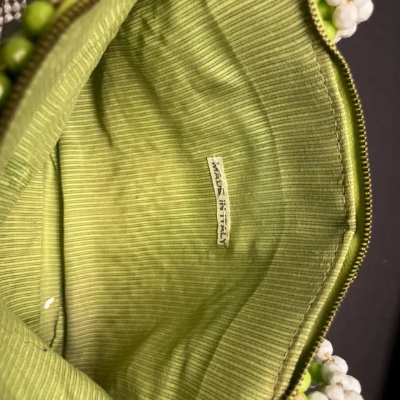 Vintage Italian Beaded Purse, White and Green, Rare Find