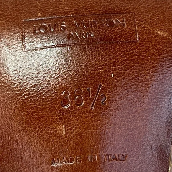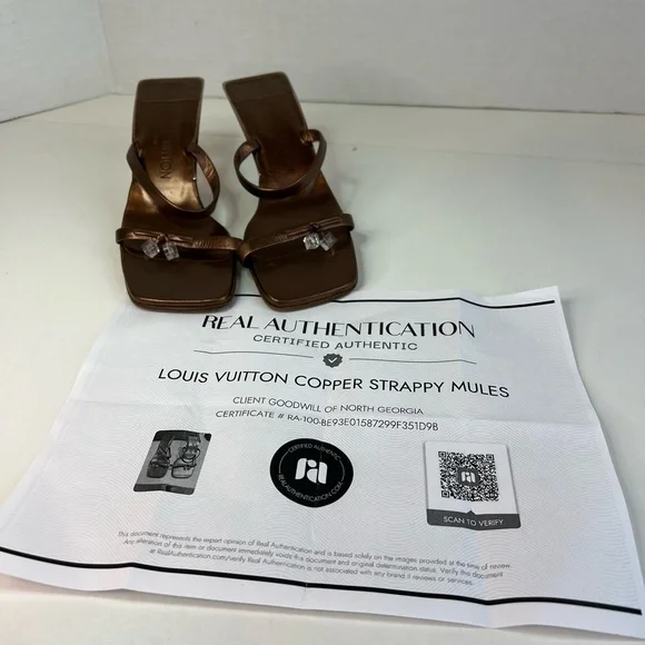 Louis Vuitton Clear Cube Copper Leather Strappy Sandals EU Size 36.5 (US 6.5) with Certificate of Authenticity Scratches/Scuffs on HeelsScratches on SolesWear on bottom of...