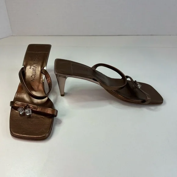 Louis Vuitton Clear Cube Copper Leather Strappy SandalsUS 6.5 EU 36.5 w/COA