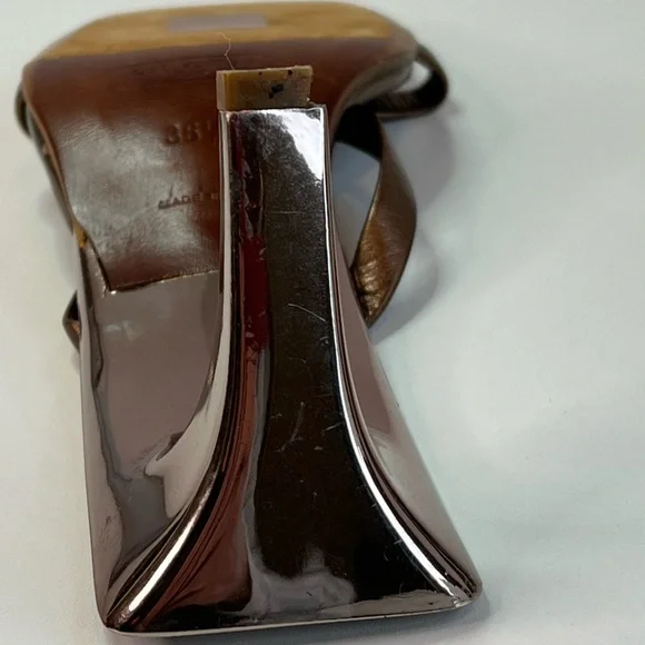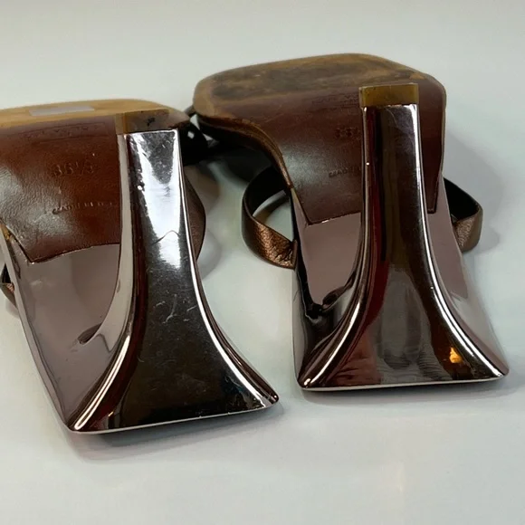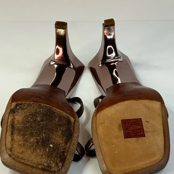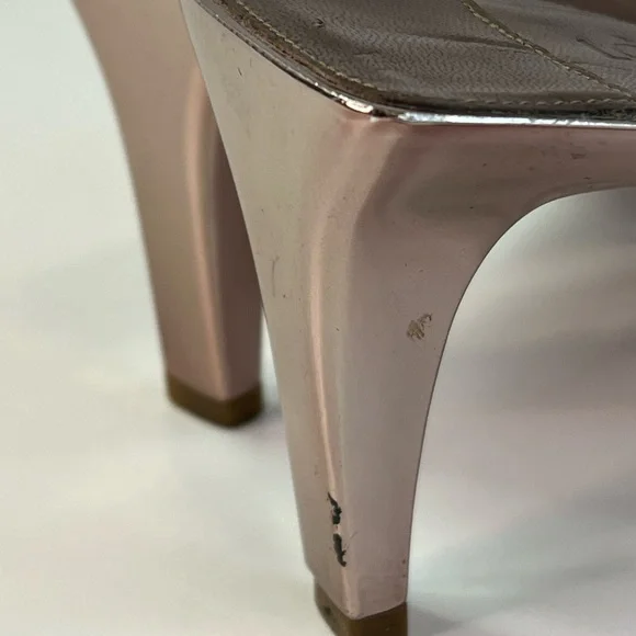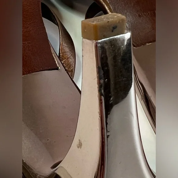 Louis Vuitton Clear Cube Copper Leather Strappy Sandals EU Size 36.5 (US 6.5) with Certificate of Authenticity Scratches/Scuffs on HeelsScratches on SolesWear on bottom of heelsHeels approximately 3”
