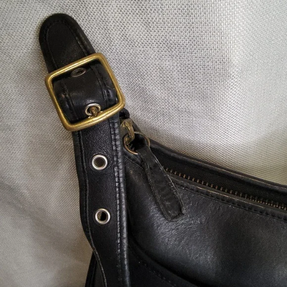 Coach style #9966This bag is from the era when Coach made high quality exquisite bags of the finest materials that would last a life time. To me those days are long gone, that is why these bags are sought after and so valuable. Whenever I come across these vintage beauties I try to offer them to you in my closet but they are becoming harder and harder to find. This bag has wear, it needs TLC. If you know how to do it you can bring this bag back its original Lustre. Hardware needs to be cleaned throughout. This bag is a 6 OUT OF 10 WITH 10 BEING BRAND NEW AND FLAWLESS If you´re ready to take on a project let this be your project bag or if you like the really worn vintage look this one´s for you. Either way the materials and craftsmanship that Coach once used make this bag a sought after piece that you will enjoy for years to come. please ask all questions prior to purchasing thanks!I´m going to be updating my closet so it´s easier to find itemsvyoure intered in. if you´re interested in seeing all my coach bags click on the thriftys coach tag down below and it should pull up all my coach bags