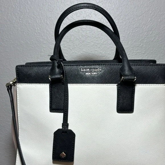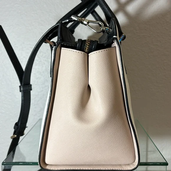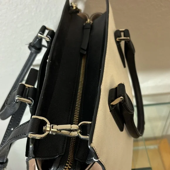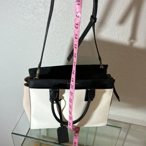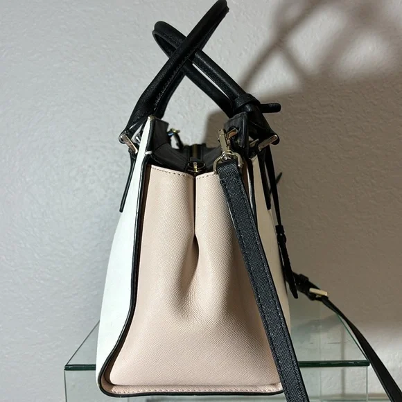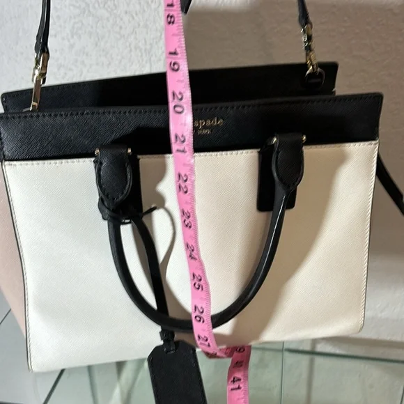 kate spade New York Cameron Satchel Purse Shoulder Bag pink and white and black