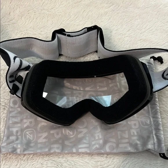 Sleek black goggles with a clear lens. Ideal for skiing and snowboarding.