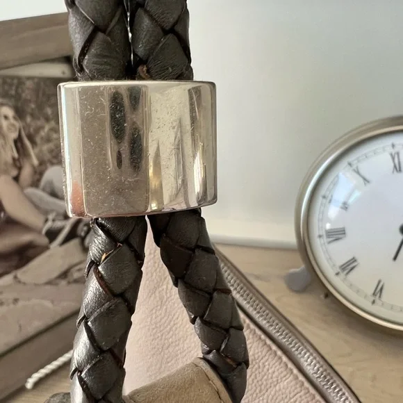 Michael Kors Skorpios Beige Pebbled Leather shoulder bag with braided strapSuper soft leather, excellent condition with no wear marks on corners, looks great.Small scratches on...