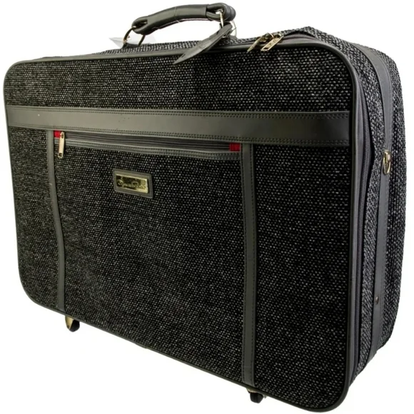 OSCAR DE LA RENTA Vintage Leather-Trim Tweed Suitcase