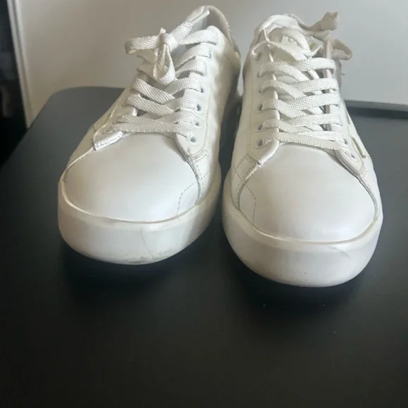 Classic white sneakers. Lace-up design. Comfortable and stylish.