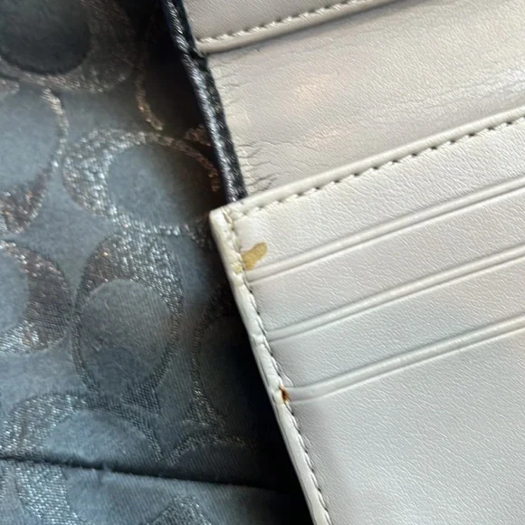 Beautiful gray Coach brand bag and matching wallet bag has purple lining EUC