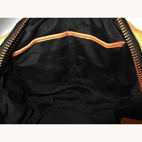 Brand: MillyColor: CaramelDimensions: 14"L x 10" H x 6.5" DDual handle straps with 5" dropLongstrap with 20" dropExterior: Made of genuine Papaya Leather exteriorDome shape with...