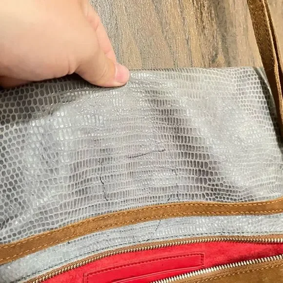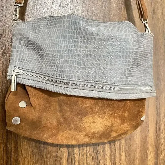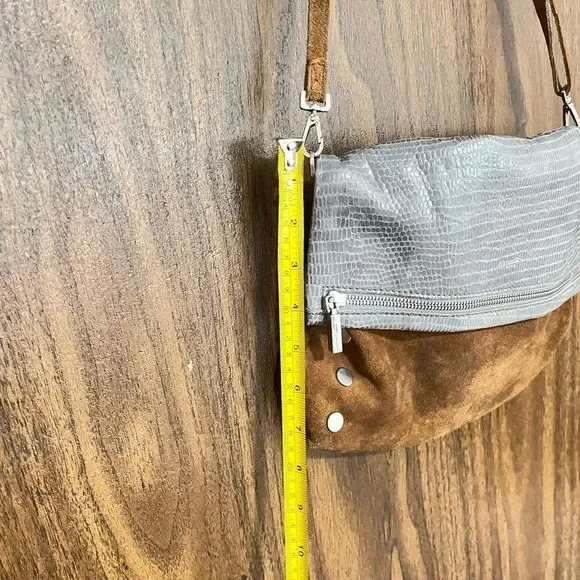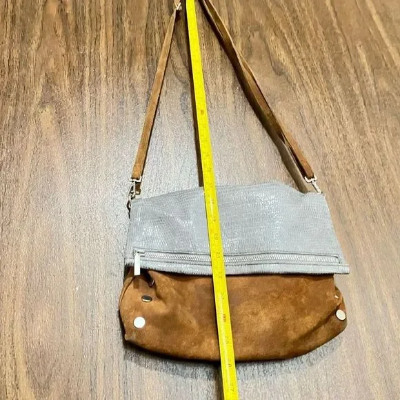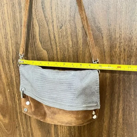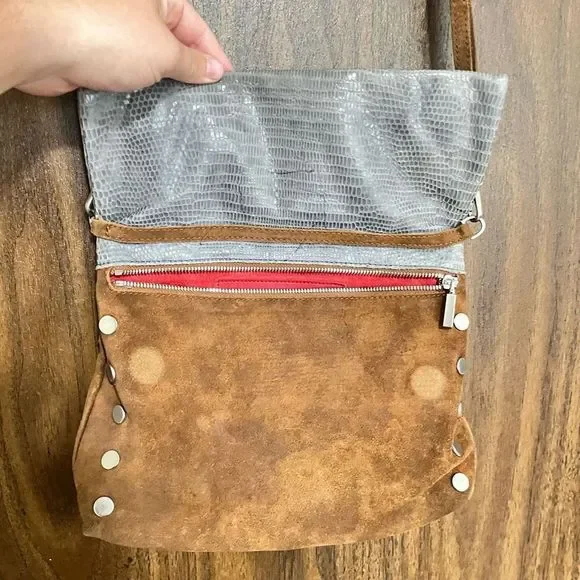 Hammitt VIP Studded Leather Snakeskin Foldover Crossbody Bag Womens Brown