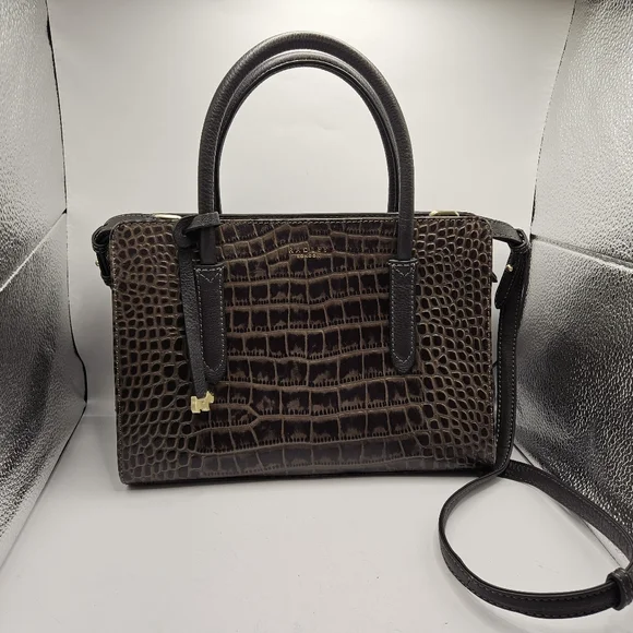Radley London LiverpoolCroco-Embossed Charcoal Leather Satchel/Crossbody.Purse is in new without tags condition.Shipped with USPS ground advantage. See pictures for more details and measurements.Please ask any questions before purchasing. G6