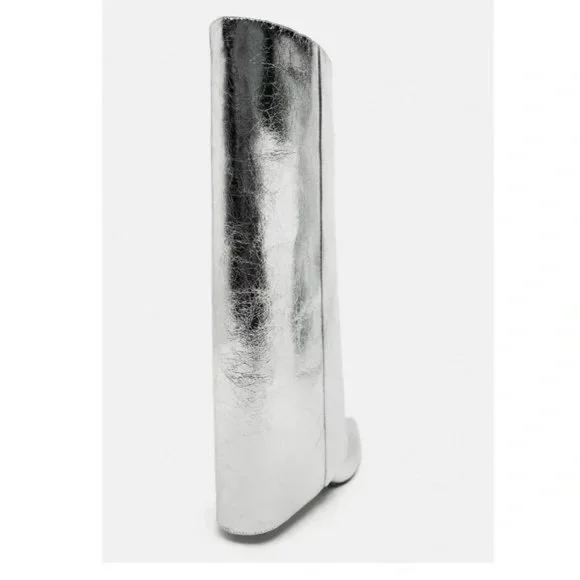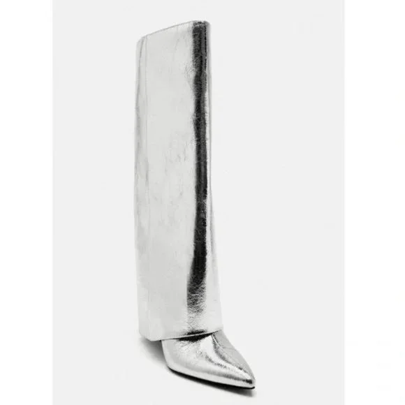 Knee high boots with metallic effect. Gaiter detail. Pointed toe.Heel height: 2.8 inches (7 cm)
