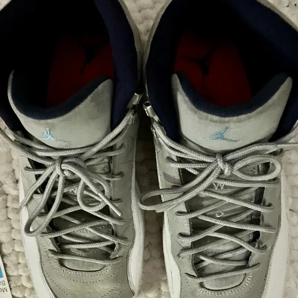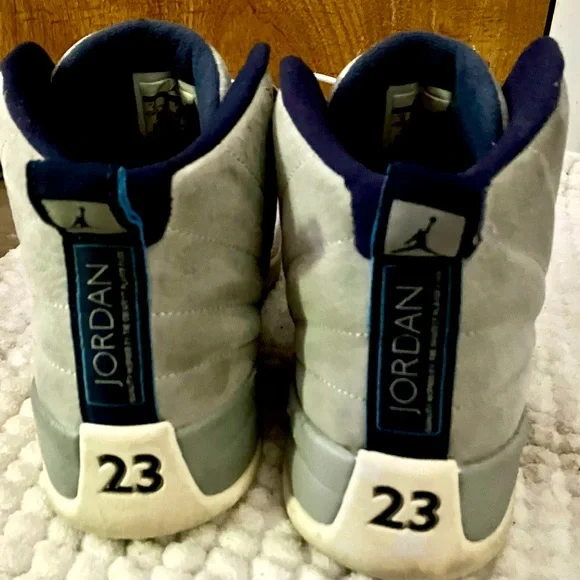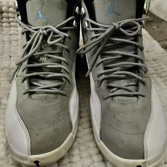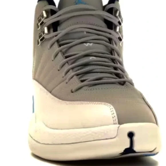 U.S size 11,Air Jordan 12 Retro, Grey/University Blue-White. The Jordan Retro 12 Grey University Blue is made from leather. Its upper part is made of grey tumbled leather. It...