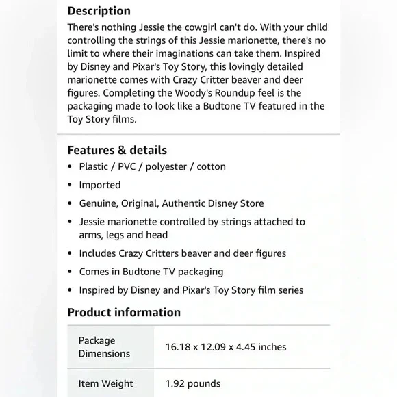 Disney Pixar Toy Story Jessie Marionette Puppet