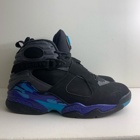 Nike Air Jordan Retro Aqua 8’s‘Black’ (2015) Men’s 13305381-025Gently worn no rips tears or snags, plenty of tread, original laces, no funky smells, shoe an overall good...