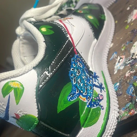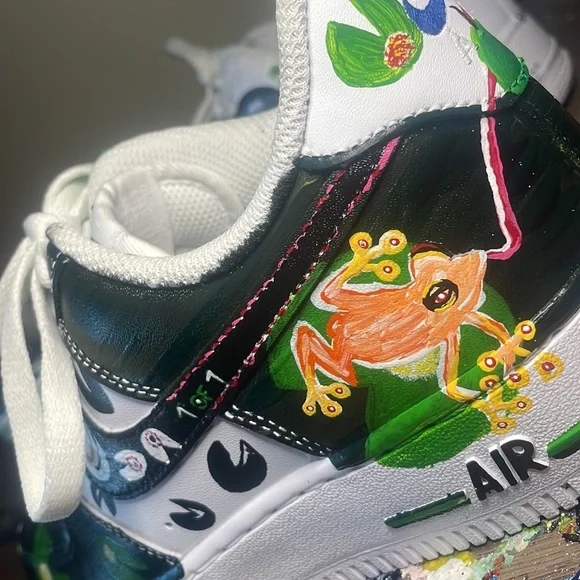 These shoes are size 7.5 and they are customized. The shoe itself are Airforces and they came out really cool.