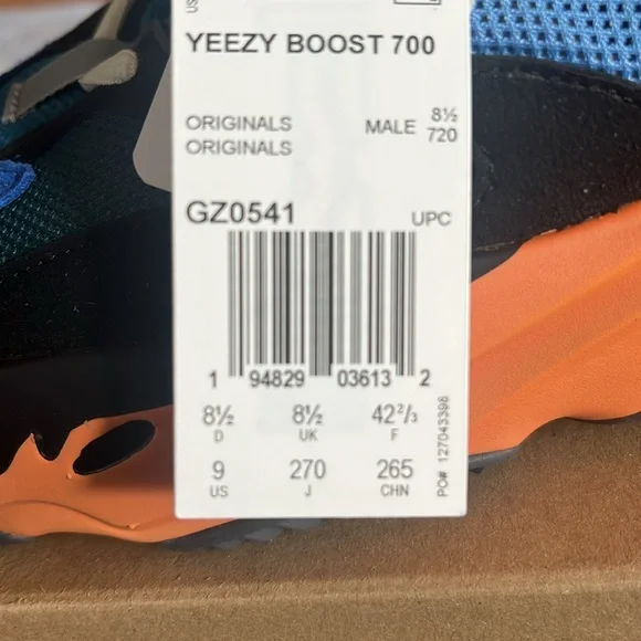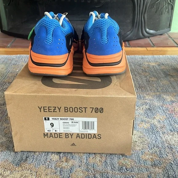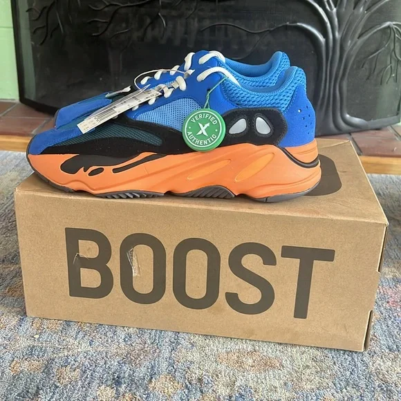 Selling Yeezy Boost 700 in "Bright Blue". New unworn, sized 9. Purchased them on StockX but didn´t like them when they arrived. Has a damaged box because of a recent move.
