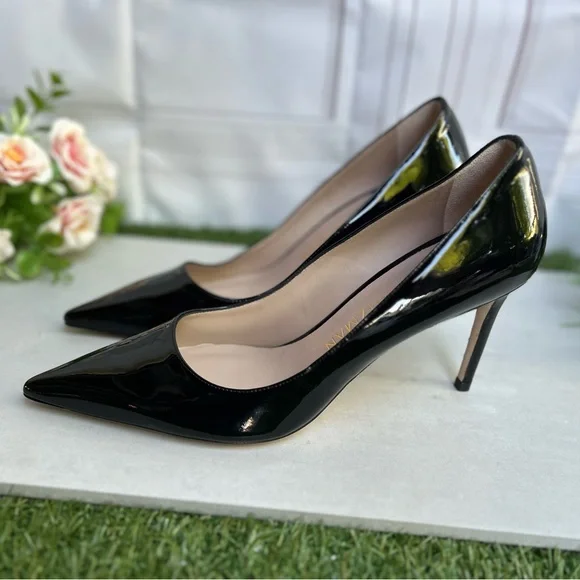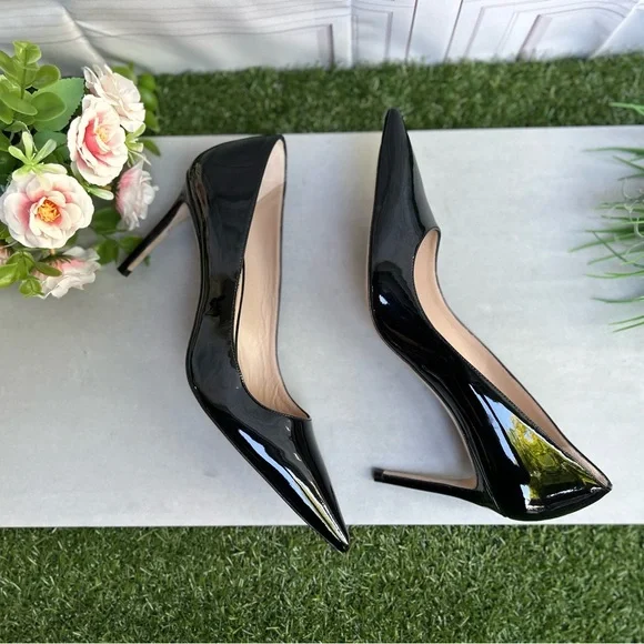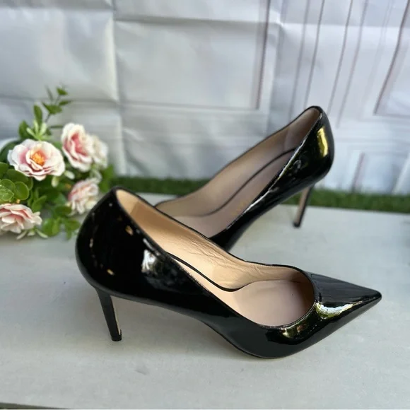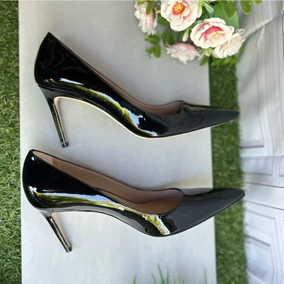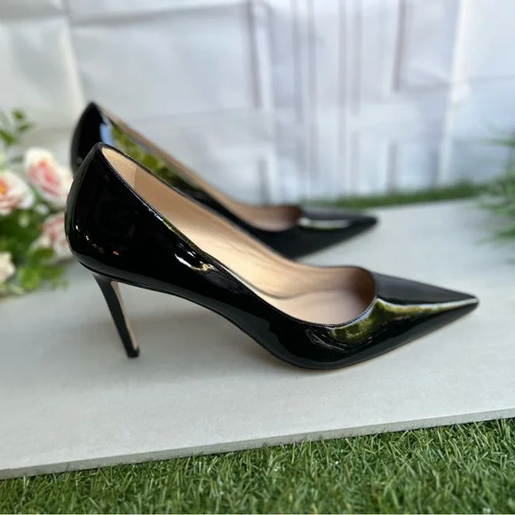 Details & careA stiletto heel and sleek pointy toe streamlines a glossy pump for a timeless classic in a wear-forever silhouette.• 3 314" heel• Leather and synthetic...