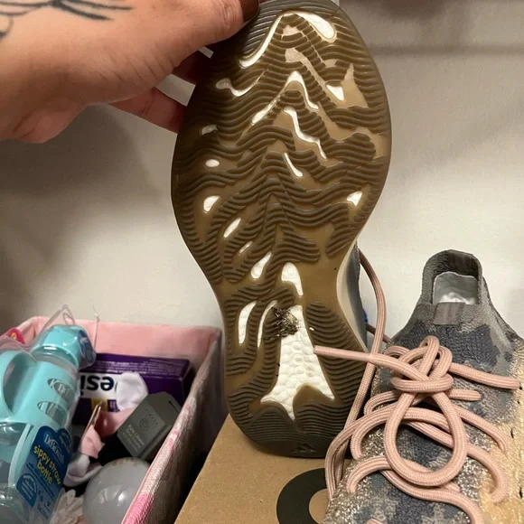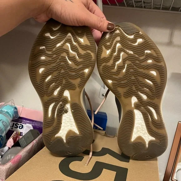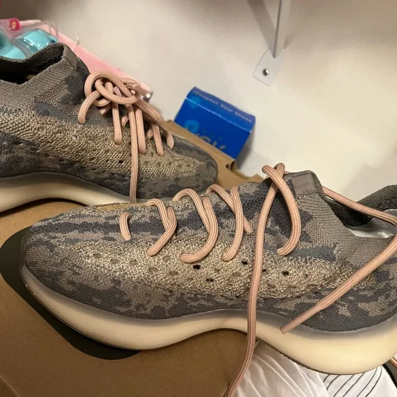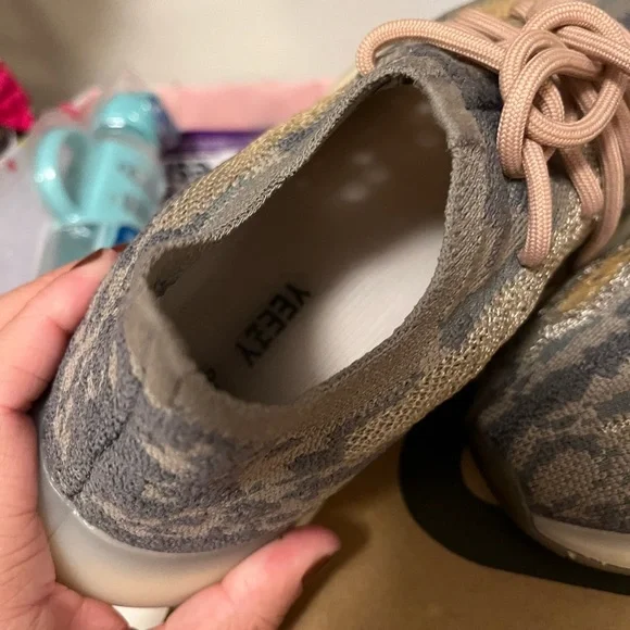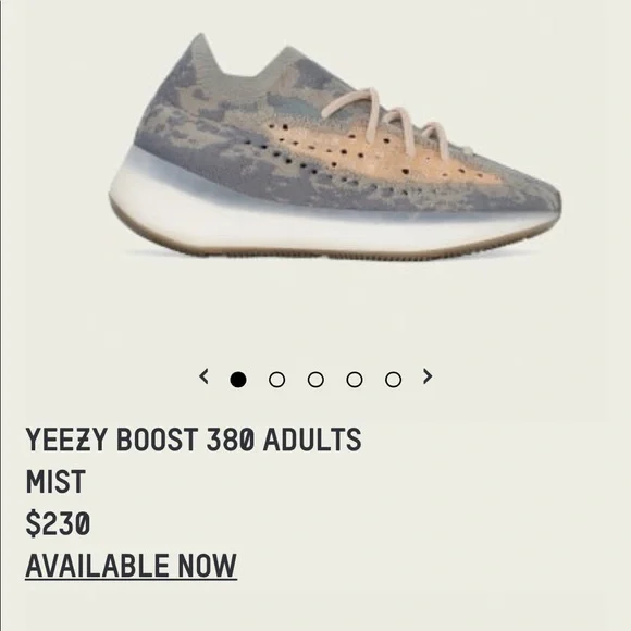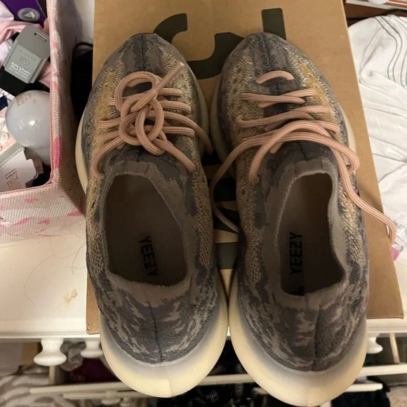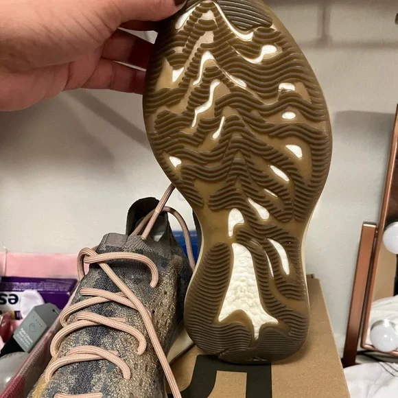 Yeezy boost 380 Mist these are so perfect ! my feet were to big for them I don’t have any tags or box but they are AUTHENTIC worn MAYBE 3-4 times. I have mens 6.5 so womens 8 I...