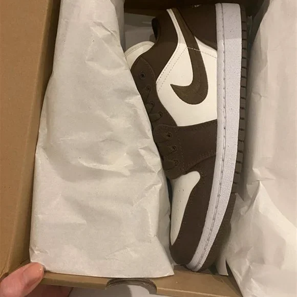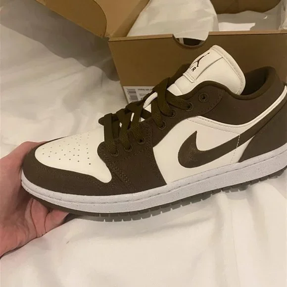 Trendy Air Jordan 1 Low SE sneakers in an attractive Olive color . They are brand new with tags and come with the box . If you need other sizes or styles . just send me a message .