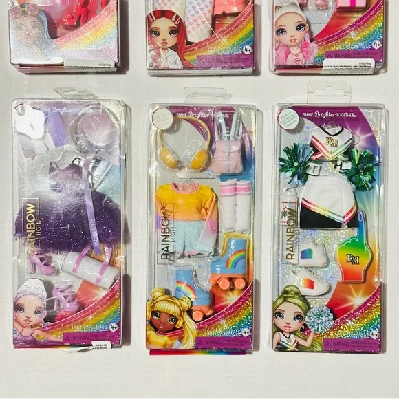 Brand new in the package. This listing includes 6 packs - full set. Dolls aren’t included!!! Skate Social, Dance Party, Sleepover, Pool Day, Ballet Recital and Pep Rally