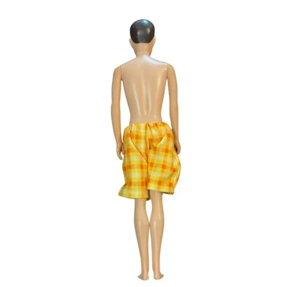Vintage Ken Doll 1960 Mattel California Marking Wearing Yellow Shorts Made in USA 12"*** I am not a Barbie or Ken expert. These were found at an estate sale. I did my best to research and identify each doll. Please feel free to reach out with questions or comments***This vintage 1960 Ken doll features a classic design with straight limbs and stamped markings. Ideal for collectors or nostalgic displays.• Stamped "1960 by Mattel Inc - Hawthorne California" • Wearing bright Yellow & orange stitched shorts(not mattel clothing)• Straight legs and arms, brown hair and blue eyes• Vintage collectible conditionThis vintage Ken Doll from Mattel is a true collectible piece for any doll enthusiast. Made in 1960 by Hawthorne in California.Minor scuffs and wear consistent with age, No major damage visible. From a Smoke Free Home,Ships Safely, Securely and Quickly,Let me know if you have any questions,