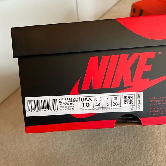 Nike Air Jordan 1 Retro High OG ‘Hyper Royal’ Men’s Size 10 Sneakers | Used, Good Quality; slight creases from use; no smell
