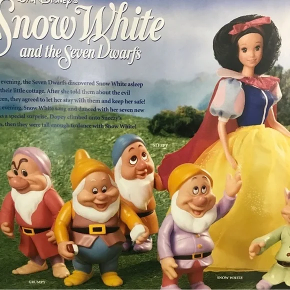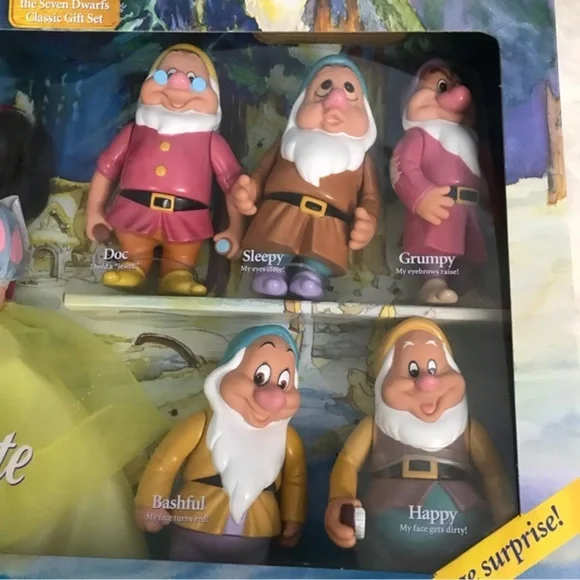 New and unopened. Some of the plastic figures have been jostled inside the box but all are perfect.Dwarves are approx 6” tall, Snow White is 12”.Add warm or cold water and the...