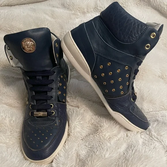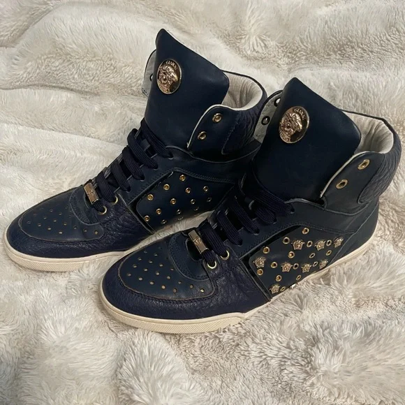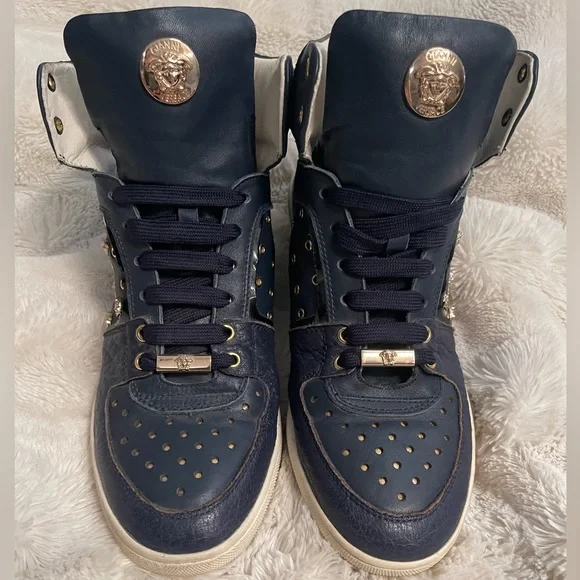 Versace Blue Leather sneakers. Still has a tons of life left. Leather is in excellent condition, no cracking nor fading. All Medusa accents are intact. Size: 41✴️Rare Item✴️