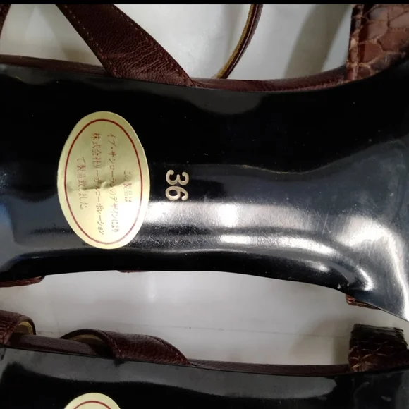 Yves Saint Laurent New Croc Emboss Chunky HeelsAnkle Straps Open-ToeBrown