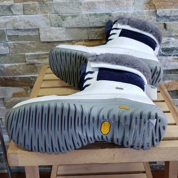 New ⬆️see picturesLeatherRubber sole Featuring Waterproof full grain leather & suede upper, Lace-up construction for a custom fit, Cushy UGGpure wool liningCuff can be folded up or down to expose plush UGGpure wool, Withstands temperatures of -20 °C, Patented windproof eVent membrane prevents feet from sweatingRemovable/replaceable UGGpure wool insole for extra comfort Vibram sole with a lug pattern sole that optimizes surface contact and provides flexibility