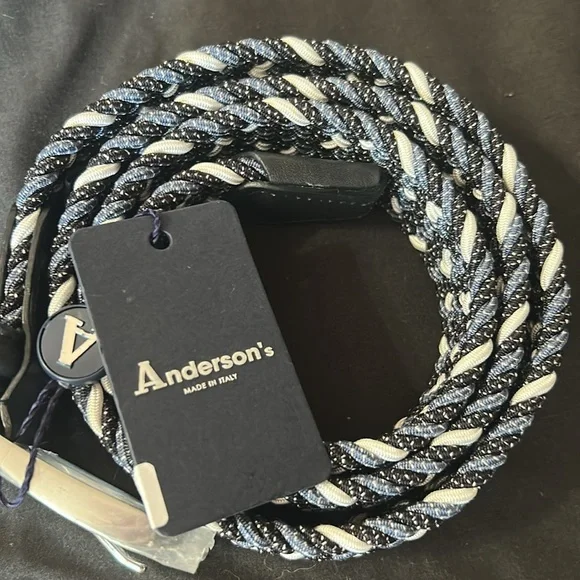 Anderson´s Mélange Stretch Woven Belt brand new with tags. Did some work with this company and had multiple belts left over! Super rad belt for men but women could rock it too! Mixture of colors to add flare to any outfit! Retail is $290-Sizes available 38, 40, 42These Woven elastic belts are flexible and crease-resistant, making them excellent travel companions. Great for pairing with monochrome outfits, this Anderson´s style has been meticulously crafted in Italy with hardy leather trims and a polished silver-tone buckle.Webbing: 74% Viscose / 26% Elastodiene Tips/Keeper - 100% LeatherGender: MensCROSS POSTED FOR LESS!