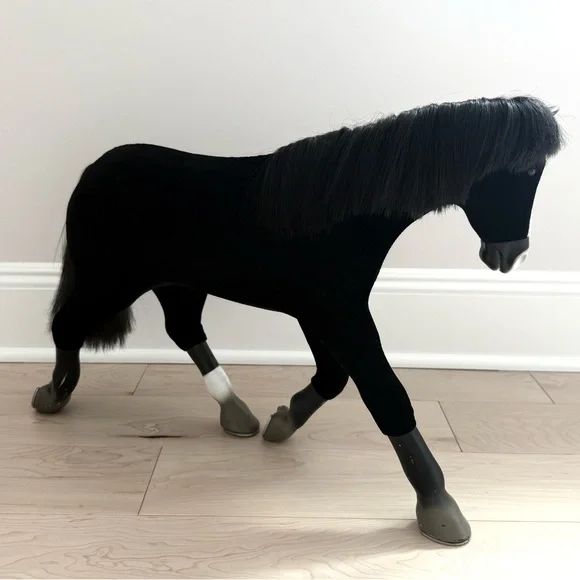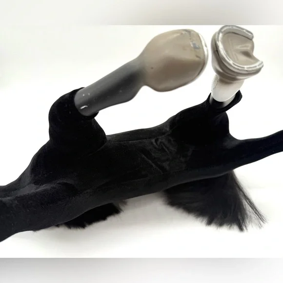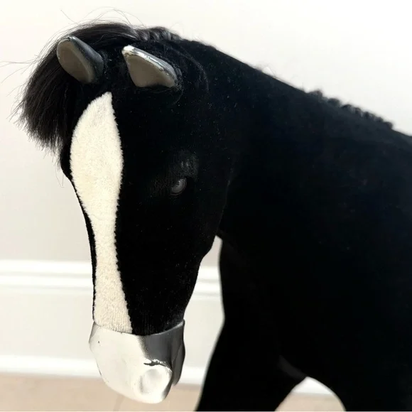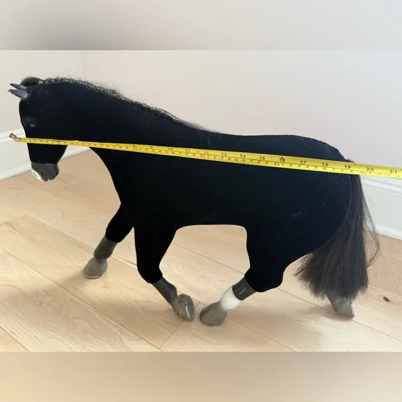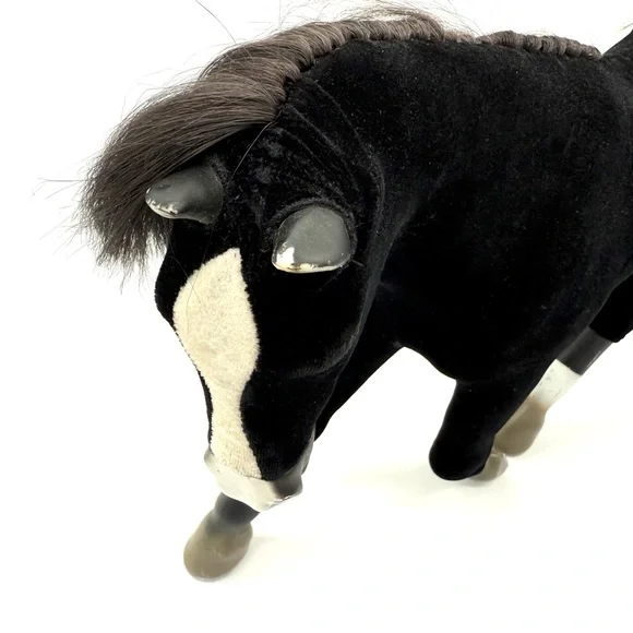 In good pre-owned condition due to some scratches and blemishes on the plastic parts. The velour body is mostly in perfect condition, there are a few minor blemishes around eyes and on legs from storing, no holes or tears. The mane and tail are in beautiful condition. Please see all the pictures.**Items are cross posted**