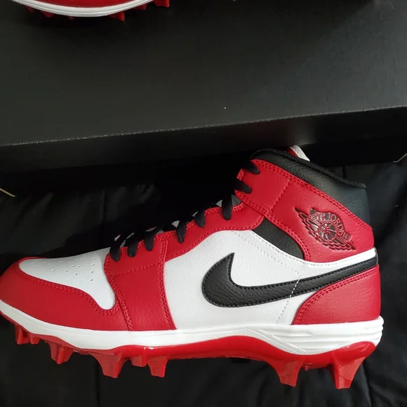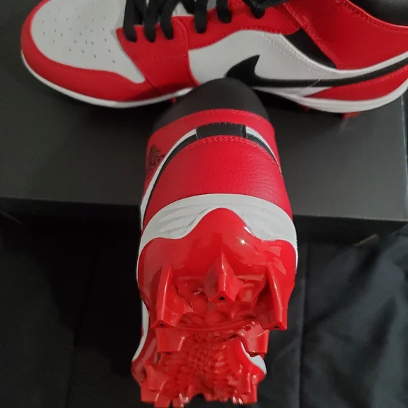 Jordan 1 Football Cleats Mid TD Chicago Size 10 Red Black White FJ6805-106 NEW