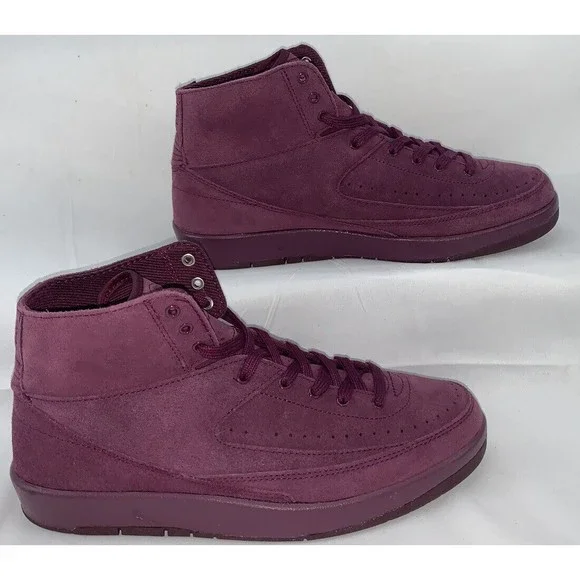 Nike Retro Air Jordan 2 II Decon Bordeaux Mens Size 8 Suede DS RARE. The shoes are brand new without box and they are in perfect condition there are no flaws as seen in pictures. I said above there is no box but these are unworn and if there any other questions please contact me and upon request I may have a replacement box. thanks