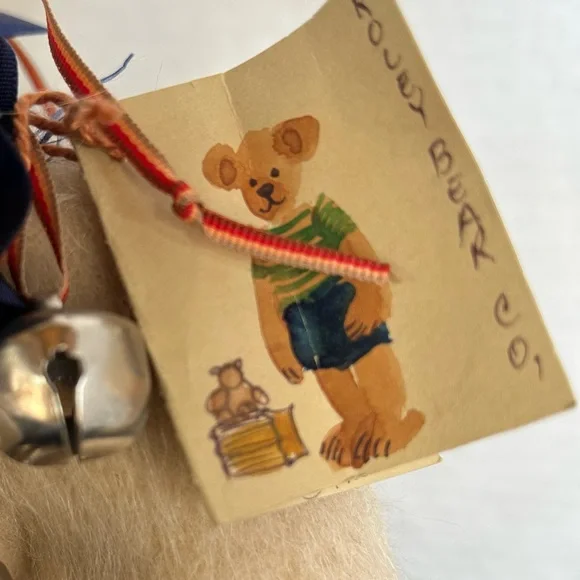 This adorable cream-colored stuffed bear features a charming blue collar with bells. Handmade by artist Barbara Conley in 1985. Original tag has notes from artist. Member of...