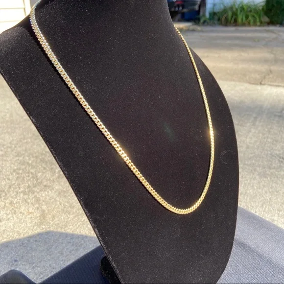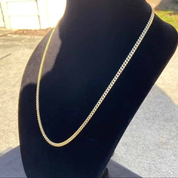 WAS $145 NOW $105 FOR LIMITED TIME! Limited Quantity. Get yours Now!High quality 14k gold Vermeil Miami Cuban gold chain .925 Italy. Made in Italy!Chain is:• 4mm• 24inDurable Tarnish Resistant Coating. Can be Worn in Water or ShowerGold Vermeil is a layer of real 14k gold bonded to .925 Sterling Silver. It is more valuable and durable then regular plating. Can last for years!High quality and durable.Has good weight to it.Jewelry Box Included• Ships within the same or 1 day• Delivered in 2-3 business days